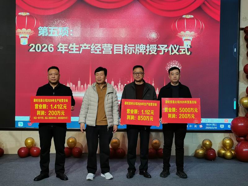隨后,2026年生產(chǎn)經(jīng)營目標(biāo)書授予儀式上董事長、總經(jīng)理賈進(jìn)保向包裝公司總經(jīng)理徐信偉、炭材公司總經(jīng)理胡偉子、貿(mào)易公司經(jīng)理賈少緯授予2026年生產(chǎn)經(jīng)營目標(biāo)責(zé)任牌。